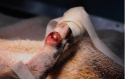 宠物肿瘤医师确定肿瘤病理类型后,拟定布置热消融治疗针的策略;将治疗针插入肿瘤边界、肿瘤内等多处,启动设备使多根治疗针同时升温到设定工作温度约 80~120 ℃,持续治疗约 3~5 分钟,确定肿瘤烧干坏死后,更换位置插入治疗针再治疗,多次多处治疗确保肿瘤高度坏死。