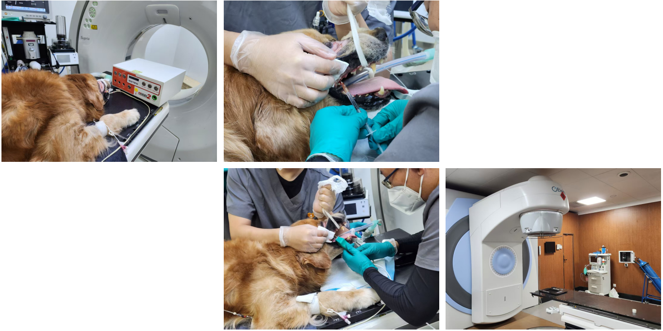 金毛罹患口腔肿瘤并接受放射线治疗,在放疗休息期中医师发现仍有一小处肿瘤持续增生中;医师决定采用电场消融治疗残存的肿瘤。